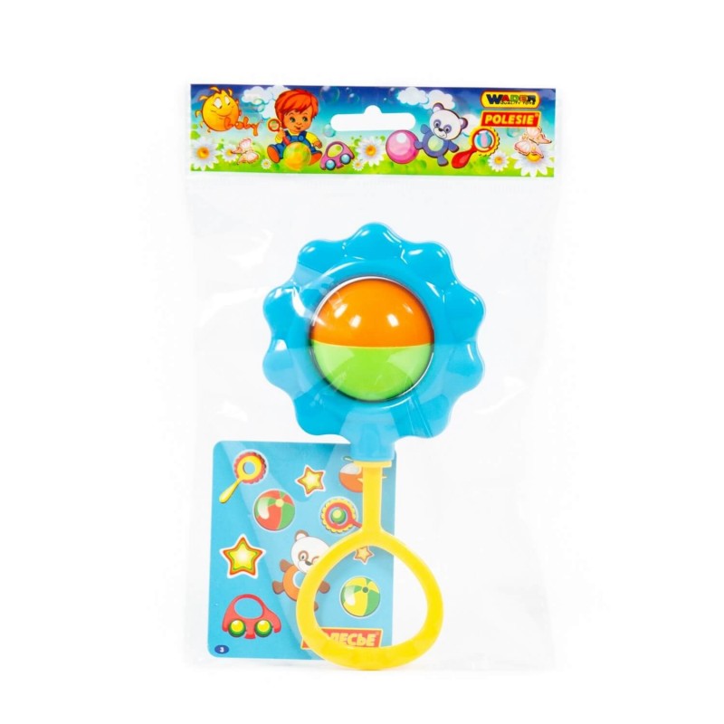 Kolorowa grzechotka wykonana z plastiku, o wysokości 16cm. Grzechotka o kształtach kwiatka. Najlepsza zabawka dla niemowląt. Dostępna w 2 wersjach kolorystycznych.