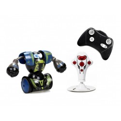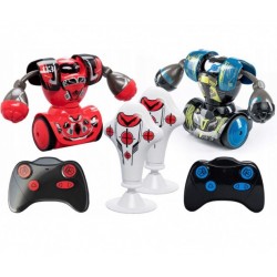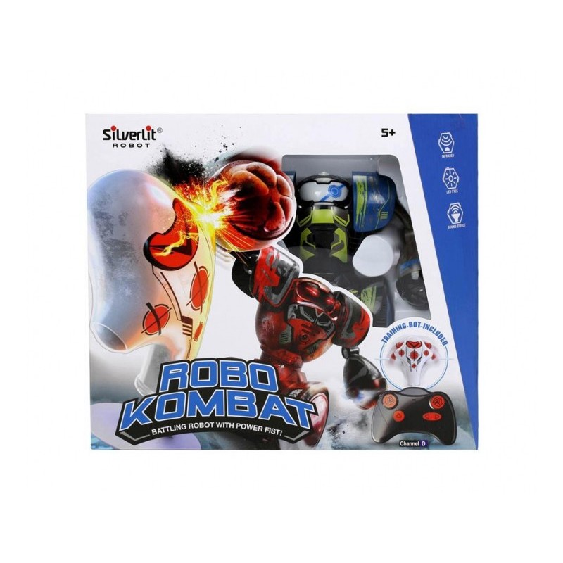 Walki robotów w domu? To żaden problem z zestawem treningowym 2w1 Robo Kombat od Dumel Silverlit. Z jego pomocą dziecko nie tylko opanuje najpotężniejsze ciosy podczas walk z manekinem, ale również może spróbować swoich sił podczas walk z prawdziwym przeciwnikiem. Do sterowania robotami służą dołączone kontrolery. Przy ich pomocy można skrócić dystans, obrócić robota oraz wyprowadzać ciosy z lewej lub z prawej.