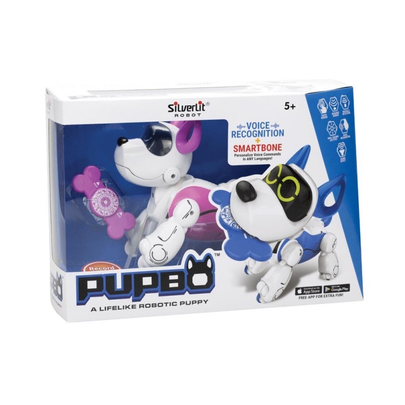Robot Silverlit Pupbo to doskonała zabawka dla dzieci, które marzą o własnym psiaku. Piesek Pupbo reaguje na komendy głosowe, ma swoje potrzeby i kocha zabawę. Możesz nauczyć go nowego imienia, ustalić wasz tajny język komend, a także sprawdzać status jego potrzeb za pomocą aplikacji na smartfonie.