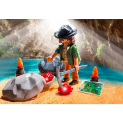 Zestaw zawiera figurkę poszukiwacza minerałów, 2 pochodnie, mapę, kilofa, 2 skały i 2 kryształy.