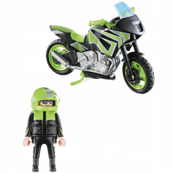 Motocyklista z Motorem to wspaniały zestaw, który rozkręci zabawę. Motocykl został sprawdzony, serwisowany i wyczyszczony, kask jest na miejscu, a zbiornik jest pełny. Jedź i ciesz się wolnością! Zestaw do zabawy składa się z motocyklisty z kaskiem, motocykla z ruchomym widelcem kierowniczym i stojaka na motocykl.