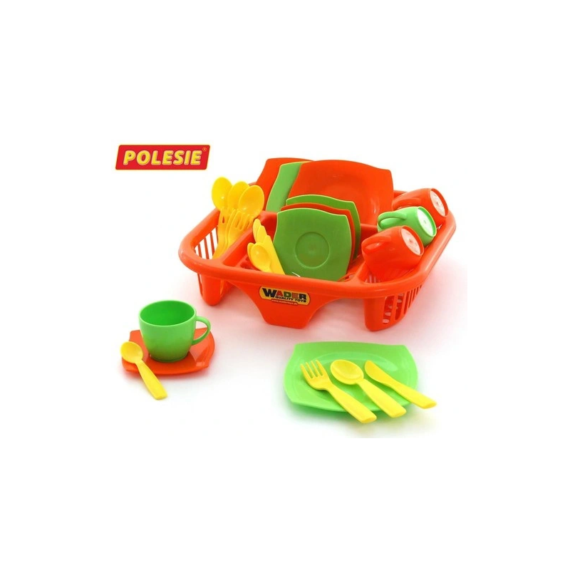 My możemy urozmaicić zabawę dając naszym dzieciom w prezencie zestaw naczyń ALISA z suszarką na 4 osoby od firmy POLESIE WADER.