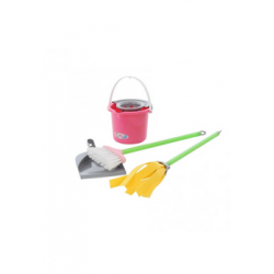 Oprócz tego do zestawu dołączono komplet akcesoriów takich jak: żelazko, dwa wieszaki na ubrania, cztery spinacze do prania, wiadro z koszykiem do wyciskania nadmiaru wody, szczotkę, mop, szufelkę oraz butelkę imitującą płyn do sprzątania brudnych powierzchni.