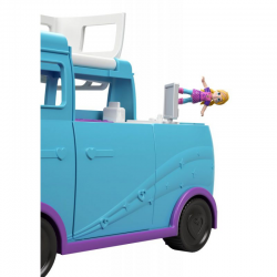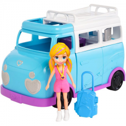 Nadszedł czas na nową przygodę, a lalka Polly jest na nią gotowa! Ubrana w sportowy strój lalka Polly chwyta walizkę i wskakuje do swego kampera!