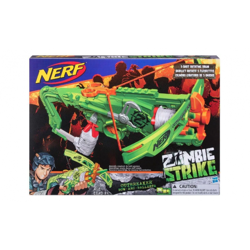 Kiedy zombie rosną w siłę, ich pogromcy muszą się zjednoczyć i tworzyć co raz to skuteczniejsze rodzaje broni. Odeprzyj atak hord zombie z nową kuszą Outbreaker. Wyrzutnia posiada obrotowy bębenek, który może pomieścić do 5 strzałek Zombie.