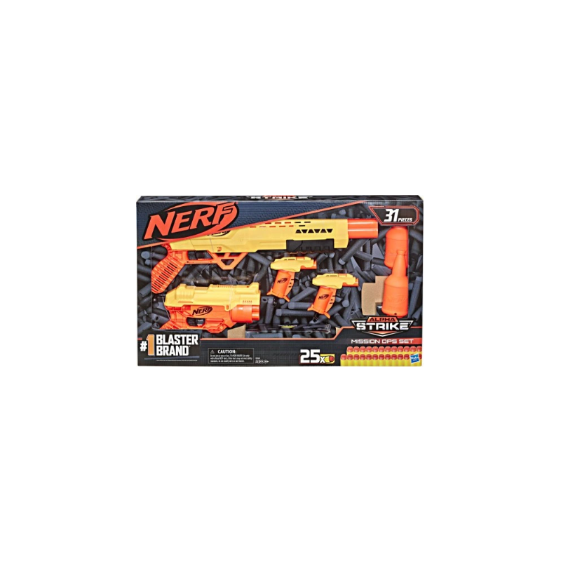 Ten 31-elementowy zestaw Mission Pack zawiera 4 wyrzutnie, 25 strzałek i cele, na których możesz ćwiczyć swoje umiejętności! W zestawie znajdziesz 2 wyrzutnie Stinger SD-1, 1 wyrzutnię Cobra RC-6, 1 wyrzutnię Tiger DB-2 i 2 pół-cele, z których możesz stworzyć jeden pełny. Wyrzutnie Alpha Strike to doskonały sposób na wkroczenie do pełnego adrenaliny świata Nerf i doświadczenie mocy marki. Dzięki nim nawet początkujący szybko wstrzelą się do gry!