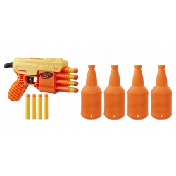 Nerf Alpha Strike - Wyrzutnia Fang QS-4 + zestaw celów E8308. Trenuj swoje umiejętności z tym 13-elementowym zestawem Fang QS-4 zawierającym wyrzutnię, 8 oryginalnych strzałek Nerf Elite i 4 pół-cele, które możesz połączyć w 2 pełne.