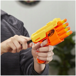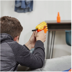 Nerf Alpha Strike - Wyrzutnia Fang QS-4 + zestaw celów E8308. Trenuj swoje umiejętności z tym 13-elementowym zestawem Fang QS-4 zawierającym wyrzutnię, 8 oryginalnych strzałek Nerf Elite i 4 pół-cele, które możesz połączyć w 2 pełne. Blaster pozwala na wystrzelenie 4 strzałek z rzędu! Niezwykle łatwy w użyciu, pozwala na zabawę nawet małym fanom Nerfa. Załaduj kolejno 4 strzałki, pociągnij za uchwyt, by przeładować, a potem naciśnij spust i wystrzel 1 strzałkę. Wyrzutnie z serii Alpha Strike to doskonały sposób na wkroczenie do pełnego adrenaliny świata Nerf i doświadczenie mocy marki. Dzięki nim, nawet początkujący szybko wstrzelą się do gry!