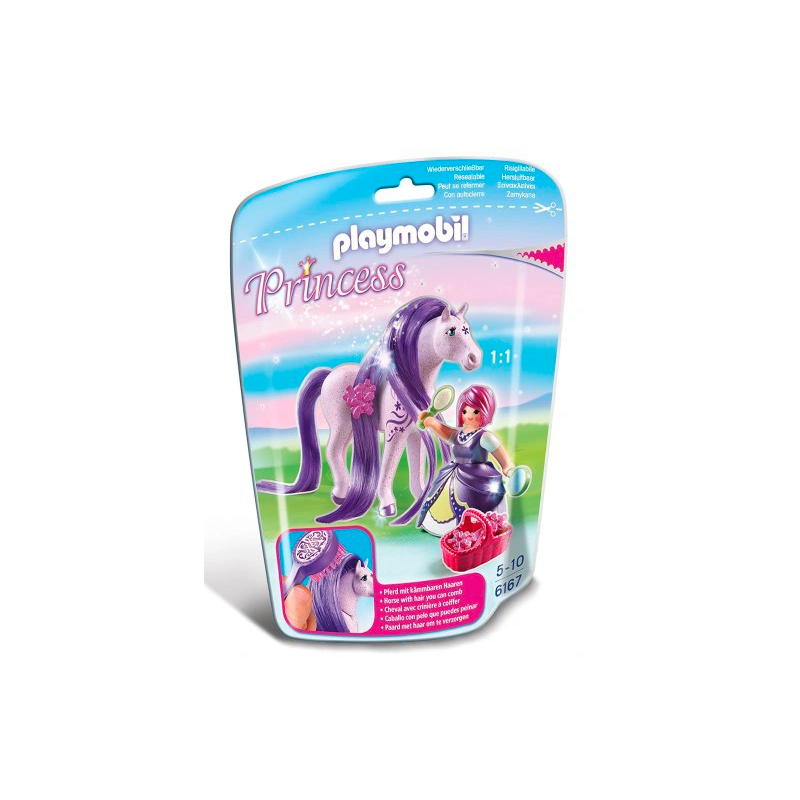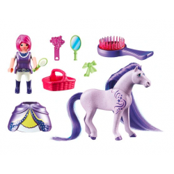 Wciel się w księżniczkę Violę i zbuduj własny bajkowy świat, w którym będziesz odgrywać scenki. Zestaw PLAYMOBIL® 6167 zawiera także piękną figurkę magicznego konia. Czesz go, wplataj kwiaty we włosy i troszcz się o niego. W czarodziejskim lusterku możesz się przeglądać albo zadawać mu pytania. To tylko jedna z możliwych historii, które możesz odegrać, to Ty decydujesz. Zabawki PLAYMOBIL® wspierają rozwój, pobudzają fantazję i kreatywność, jednocześnie zachęcając do poznawania otaczającego świata. Ciesz się nieograniczonym możliwością zabawy!