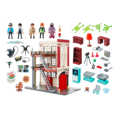 Playmobil 9219 Pogromcy Duchów - Straż Pożarna Pogromcy duchów znów wkraczają do akcji. Czy uda im się pokonać ducha bibliotekarza? W zestawie od Playmobil znajduje się trzypiętrowy budynek głównej kwatery Pogromców Duchów z czerwonej cegły, w którym rozpanoszył się zły duch bibliotekarza
