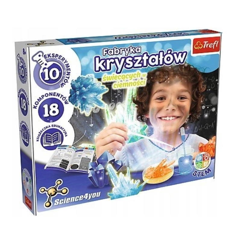 Dzięki zestawowi Fabryka Kryształów Świecących w Ciemności od Science4You dowiesz się jakie są rodzaje i kształty kryształów, w jaki sposób się tworzą i wzrastają.