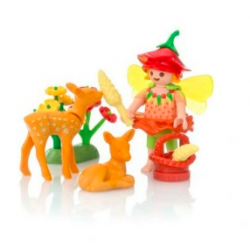 Poznaj mieszkankę zaczarowanej krainy Playmobil – wróżkę w kwiatowym kapelusiku z pomarańczowymi skrzydełkami. Mieszka w lesie, w którym opiekuje się dwiema sarenkami. W koszyku niesie dla nich smakowite przekąski. Zestaw zawiera także element leśnej scenerii – kępkę trawy z wyrastającymi z niej kolorowymi kwiatami.