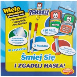 Szalona zabawa w rysowanie i zgadywanie dla całej rodziny. Gra Pensilly polega na rysowaniu haseł przy użyciu trzęsącego się długopisu, tak, żeby inni odgadli hasło. Do wyboru są 2 poziomy trudności, różniące się intensywnością drgań długopisu. Gracze dzielą się na drużyny i wybierają rysujących. Pierwsza osoba losuje 2 karty ze stosów: Przedmioty i Określająca, odwraca klepsydrę i zaczyna rysować hasło. Wszyscy pozostali gracze są zgadującymi i wykrzykują co widzą na tablicy do rysowania. Jeśli ktoś zgadnie hasło, drużyna tego gracza zdobywa tyle punktów ile znajduje się na karcie. Gra Pensilly przeznaczona jest dla 1 do 2 graczy od 5 roku życia.