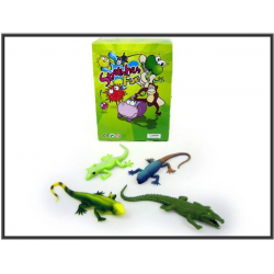 Jaszczurka miękka. Może służyć jako zabawka , materiał dydaktyczny , gniotek rehabilitacyjny. Wykonana z bardzo miękkiej gumy , wypełniona groszkiem. Rozciągliwa. Poszczególne egzemplarze mogą różnić się wielkością plamy zielonej - część jest bardziej zielona , inne mają więcej żółtego na grzbiecie i ogonie . Jaszczurka ze zdjęcia jest przykładem z większą ilością zieleni. Długość - około 28 cm (cała wraz z ogonem )