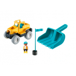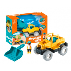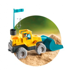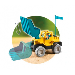 Pojazd doskonale nadają się do zabawy w piasku. Jest duży i wytrzymały. Koparka łączy w sobie funkcję maszyny budowlanej do zabawy i łopatki. Mały budowniczy może kopać, spychać, przenosić piach i ziemię, lub zdjąć łychę i korzystać z niej jak z łopatki. Wśród akcesoriów dzieci znajdą figurkę budowniczego i kosz na figurkę z flagą. Możliwość montażu łyżki z przodu koparki lub w pozycji pochyłej.