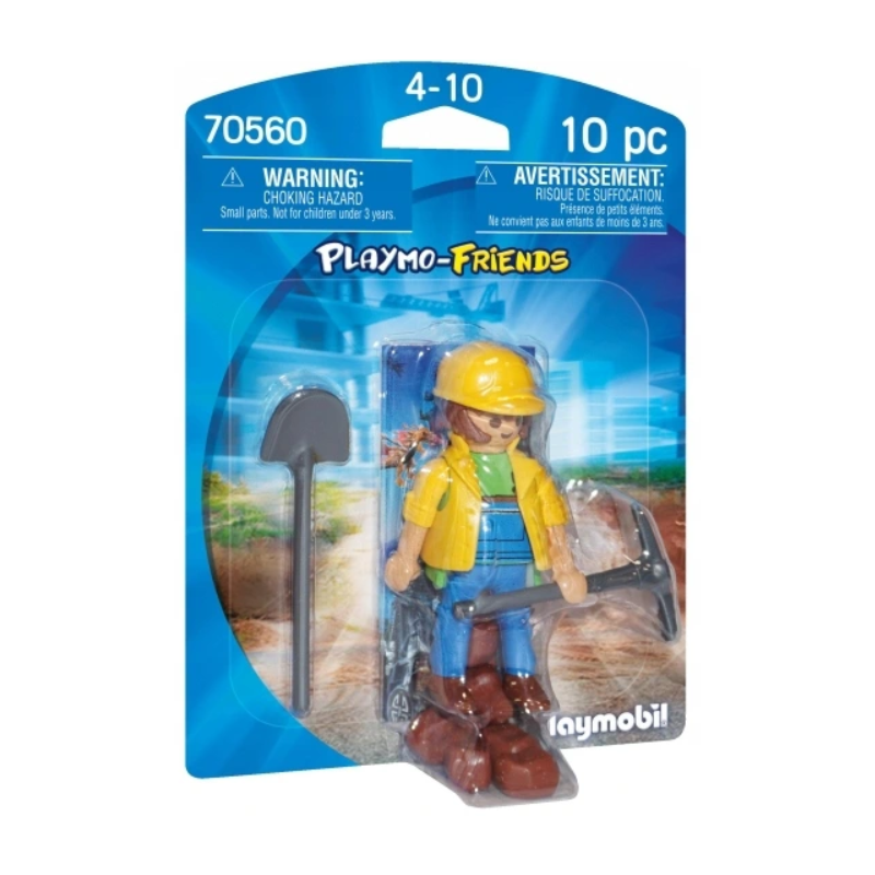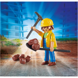 Pracownik budowy z narzędziami budowlanymi i kamieniami. Figurki PLAYMOBIL w różnych wydaniach tematycznych. Artykuł zawiera figurkę o wielkości 7,5 cm. Z wieloma dodatkami do urozmaicenia zabawy. Zawartość pudełka:- Figurki: 1 pracownik budowlany- Akcesoria: 1 łopata, 1 podwójna motyka, 5 kamieni. Od 4 roku życia.