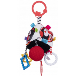 Sensoryczna kostka z podobiznami ptaszków bawi i edukuje! Zabawka oddziałuje na poszczególne zmysły malucha. Zmysł dotyku stymulują zróżnicowane materiały, zmysł słuchu, grzechotka ukryta we wnętrzu kostki i doczepiana piszczałka, a zmysł wzroku, piękne, kontrastowe kolory. Dodatkowo, zabawka wyposażona została w gryzaczki, które przyniosą ulgę w ząbkowaniu i praktyczną zawieszkę, ułatwiającą zaczepienie kostki w wybranym miejscu.