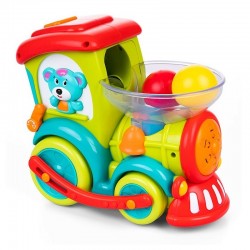 Kolorowa ciuchcia, która kryje w sobie mnóstwo niespodzianek. Działa ona w dwóch trybach: statycznym, w którym zabawka nie przemieszcza się, oraz w dynamicznym, w którym ciuchcia jeździ w różnych kierunkach. Dodatkowo, z tyłu zabawki znajduje się dźwignia zmieniająca kierunek wypadania piłeczek. Jeśli przesuniemy ją w przód, ciuchcia będzie żonglować piłeczkami. Kiedy obrócimy dźwignię do tyłu, piłeczki będą wypadać z ciuchci. Zabawka pomaga ćwiczyć refleks! Im szybciej maluch będzie wrzucał piłeczki do komina, tym szybciej ciuchcia będzie jeździć! Zabawka mówi w języku polskim, liczy wrzucane do jej wnętrza piłeczki oraz śpiewa wesołą piosenkę. Produkt przeznaczony dla dzieci od 18 miesiąca życia.