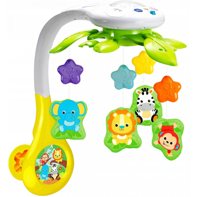 Muzyczna Karuzela z Projektorem. Dedykowana dla dzieci w wieku niemowlęcym, doskonała już od narodzin. Podczas działania wesoły żółty miś buja się na chmurce. Zabawka wyświetla ruchome scenki, skupiając uwagę dziecka na „ekranie” (może nim być np. powierzchnia ściany lub sufitu).