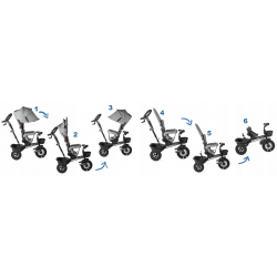 Możliwości regulacji położenia bądź demontażu takich elementów jak torba, rączka do pchania/kierowania, podnóżek, daszek przeciwsłoneczny, czyni ten pojazd bardzo uniwersalnym. Z łatwością możesz go dostosować do aktualnych możliwości i umiejętności twojej pociechy.