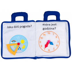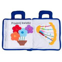 Materiałowa książeczka, która wprowadzi najmłodszych w świat praktycznych umiejętności, takich jak sznurowanie buta, zapinanie guzików, wiązanie tasiemek czy odczytywanie godziny. Każda ze stron kryje inne zadanie, rozwijające sprawność małych paluszków.