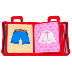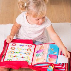 Nigdy nie jest za wcześnie na naukę praktycznych umiejętności. Na stronach książeczki kryją się różne zadania do wykonania. Maluchom przyjdzie się zmierzyć ze sznurowaniem buta, wiązaniem tasiemki, przyczepianiem klamerek czy zapinaniem paska. Zróżnicowane faktury poszczególnych elementów rozwijają dodatkowo umiejętności poznawcze dziecka, oddziałując na jego zmysły dotyku i wzroku. Książeczka zapinana jest na zamek błyskawiczny. Praktyczne uchwyty pozwolą zabrać ją ze sobą dosłownie wszędzie, aby mogła towarzyszyć małym spryciarzom w każdej sytuacji.