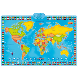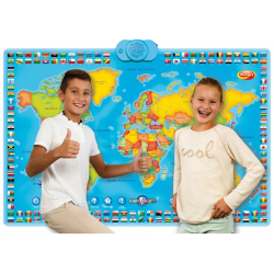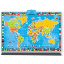 Interaktywna Mapa Świata Dumel Discovery pokaże dzieciom, że nauka geografii wcale nie musi być nudna. Wystarczy zawiesić ją na ścianie lub rozłożyć na podłodze. Ważne, żeby było dziecku wygodnie bo czeka je prawdziwa podróż dookoła Świata. Interaktywna instrukcja poprowadzi najmłodszych przez zabawę, dostarczając rozległej geograficznej wiedzy na temat flag, stolic, a także języków jakim posługują się mieszkańcy 78 państw. Czytelna, duża i kolorowa mapa przybliży dzieciom również ciekawostki związane z poszczególnymi miejscami na naszym globie. A to wszystko będzie możba połączyć z nauką języka angielskiego, ponieważ zabawka jest dwujęzyczna.