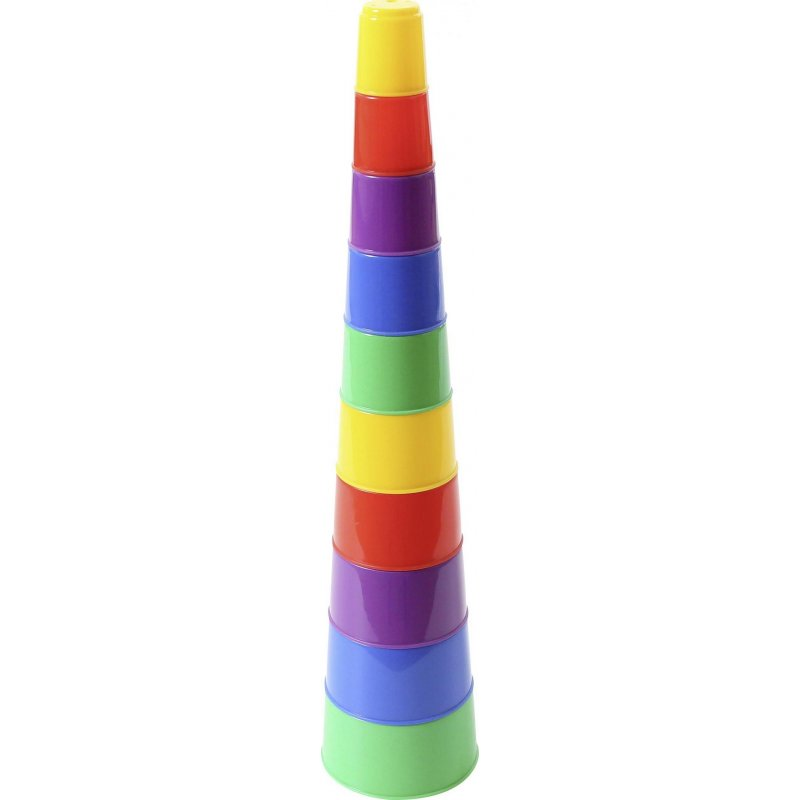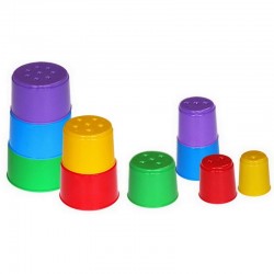 Piramida z kubeczków sprawi dziecku dużo frajdy, bo będzie mogło:
