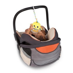 Wesoły ptaszek z radością przyfrunie do wózka Twojego Malucha, aby zaprosić go do wspólnej zabawy! Stópki ptaszka są zarazem wygodnym uchwytem idealnie dopasowanym do małych rączek. Gdy bobas za nie pociągnie ptaszek zsunie się w dół, a następnie poruszając skrzydełkami podfrunie z powrotem do góry. Przymocowana do zabawki zawieszka pasuje do większości wózków, tak aby zabawka mogła towarzyszyć Twojemu Dzidziusiowi w niemal każdym miejscu!